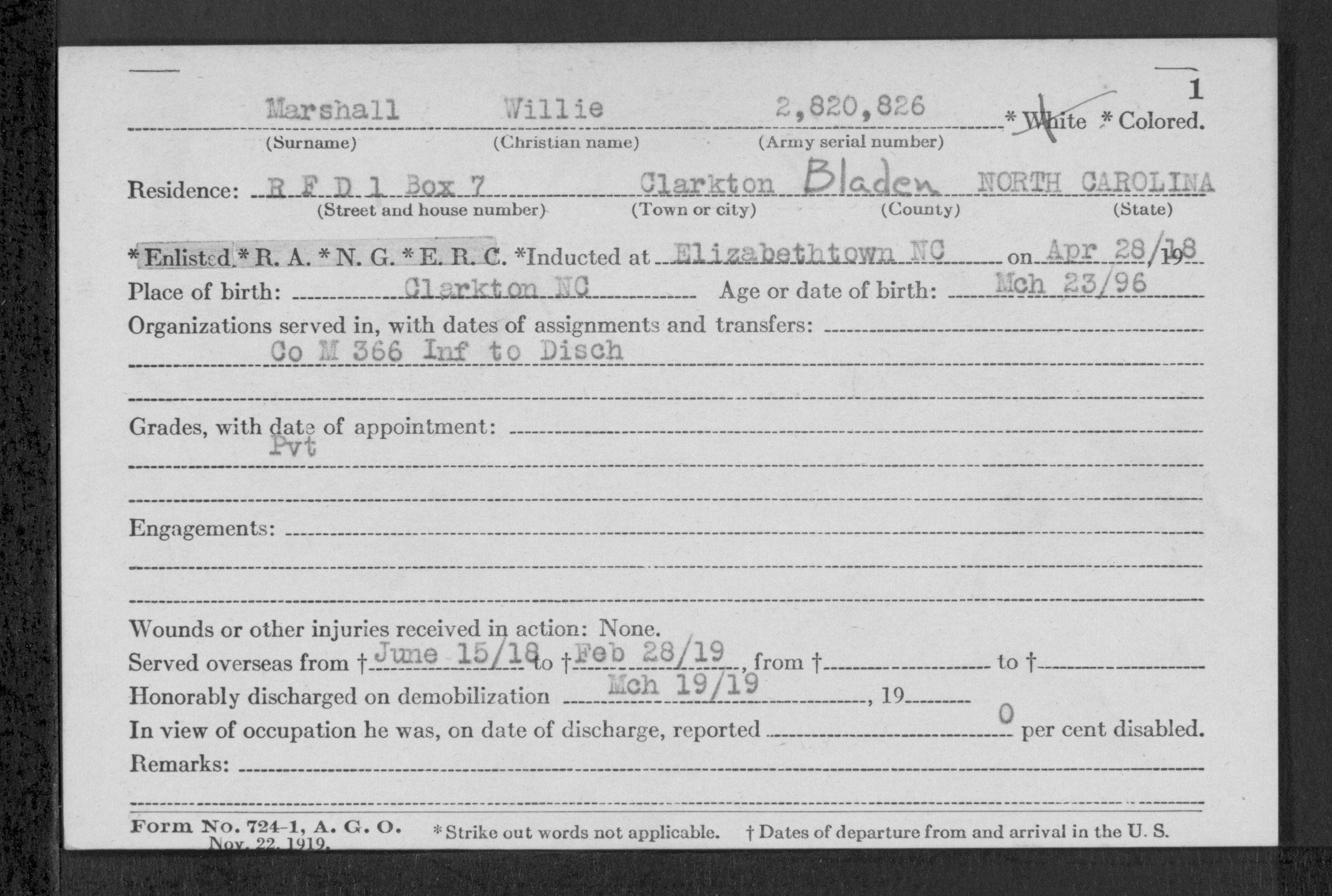 | Discharge date: | 3/19/1919 |