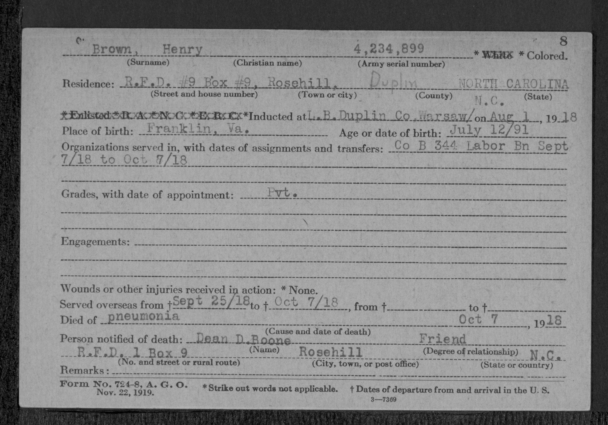 | Induction date: | 8/1/1918 |
