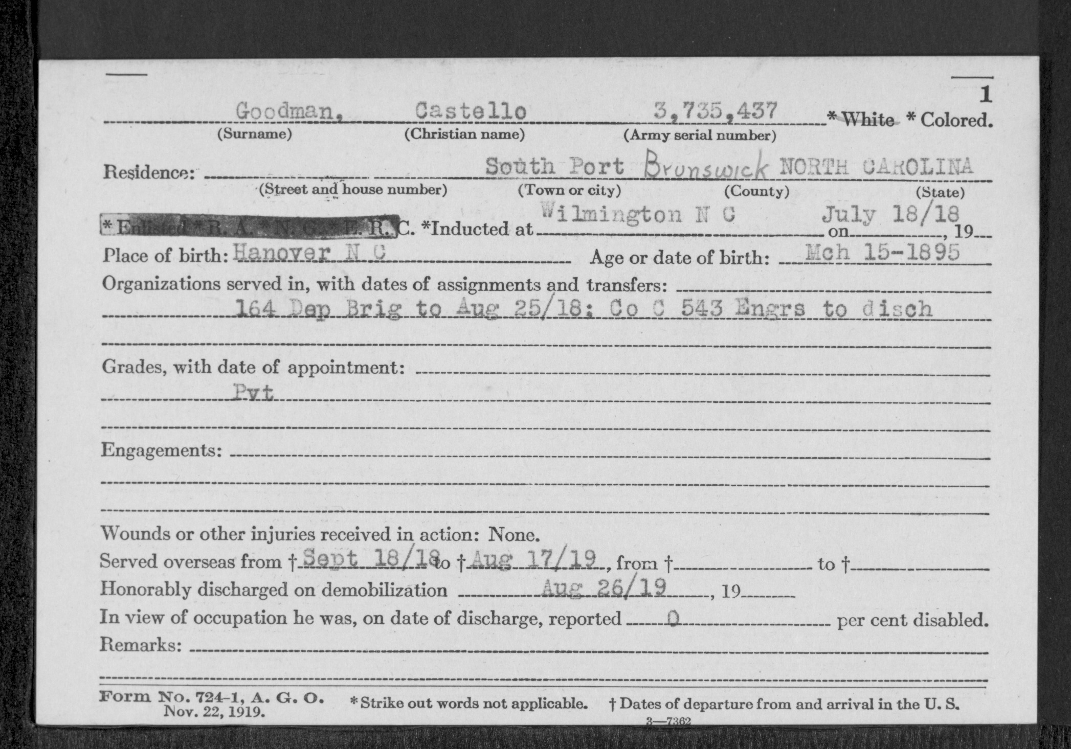 | Discharge date: | 8/26/1919 |