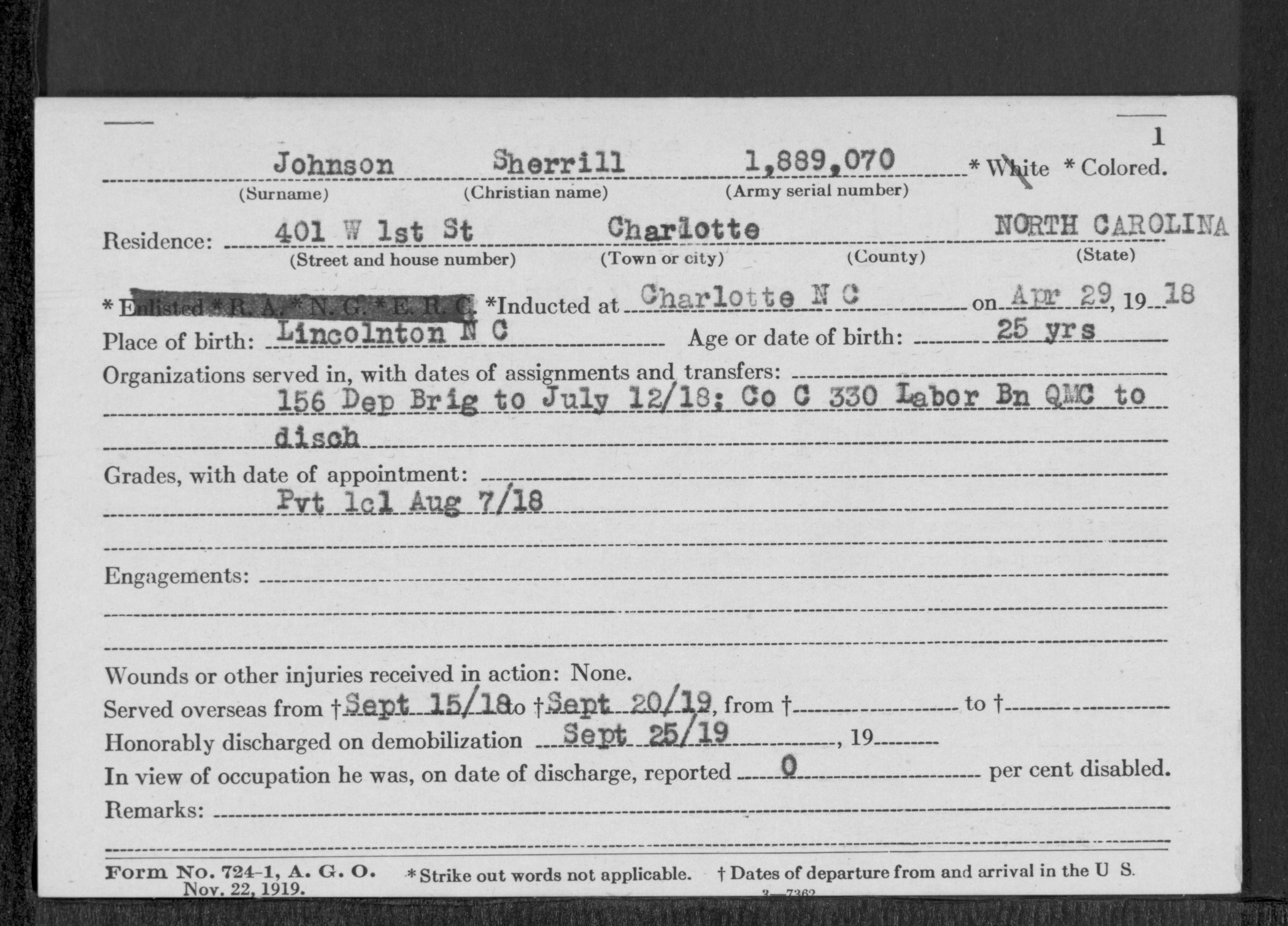 | Discharge date: | 9/25/1919 |