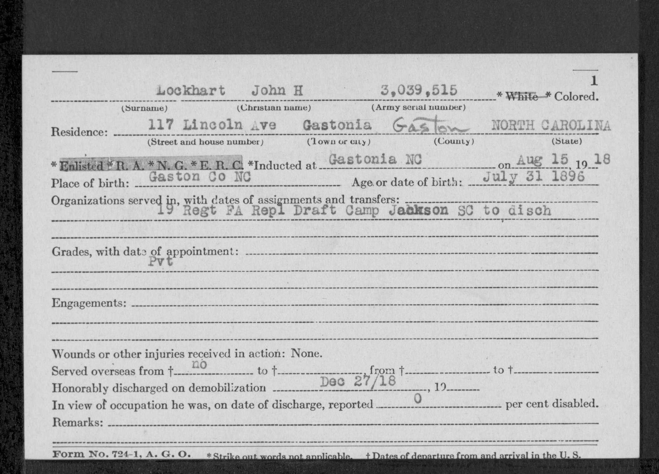 19 Regt Fa Repl Draft Camp Jackson Sc