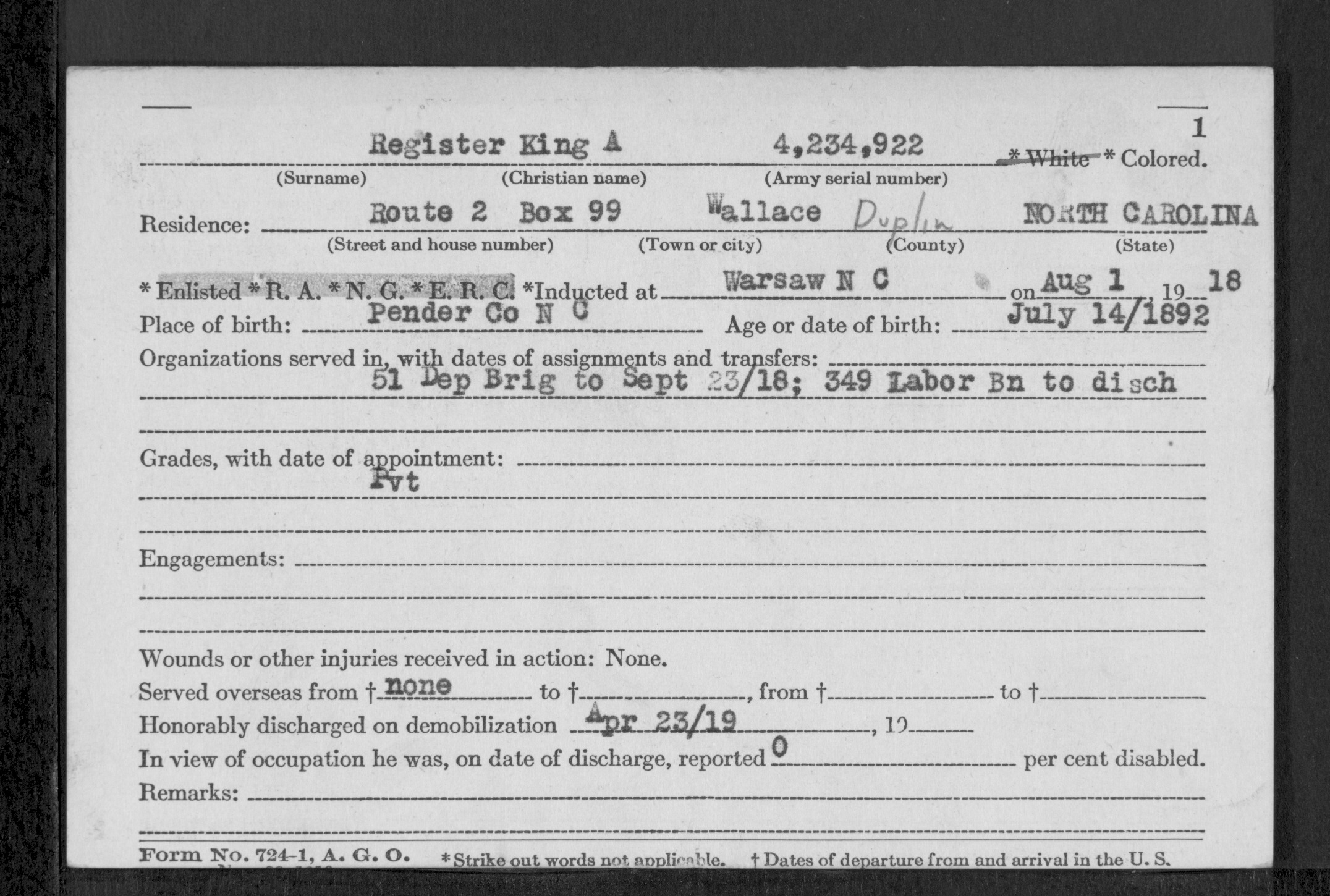 | Induction date: | 8/1/1918 |