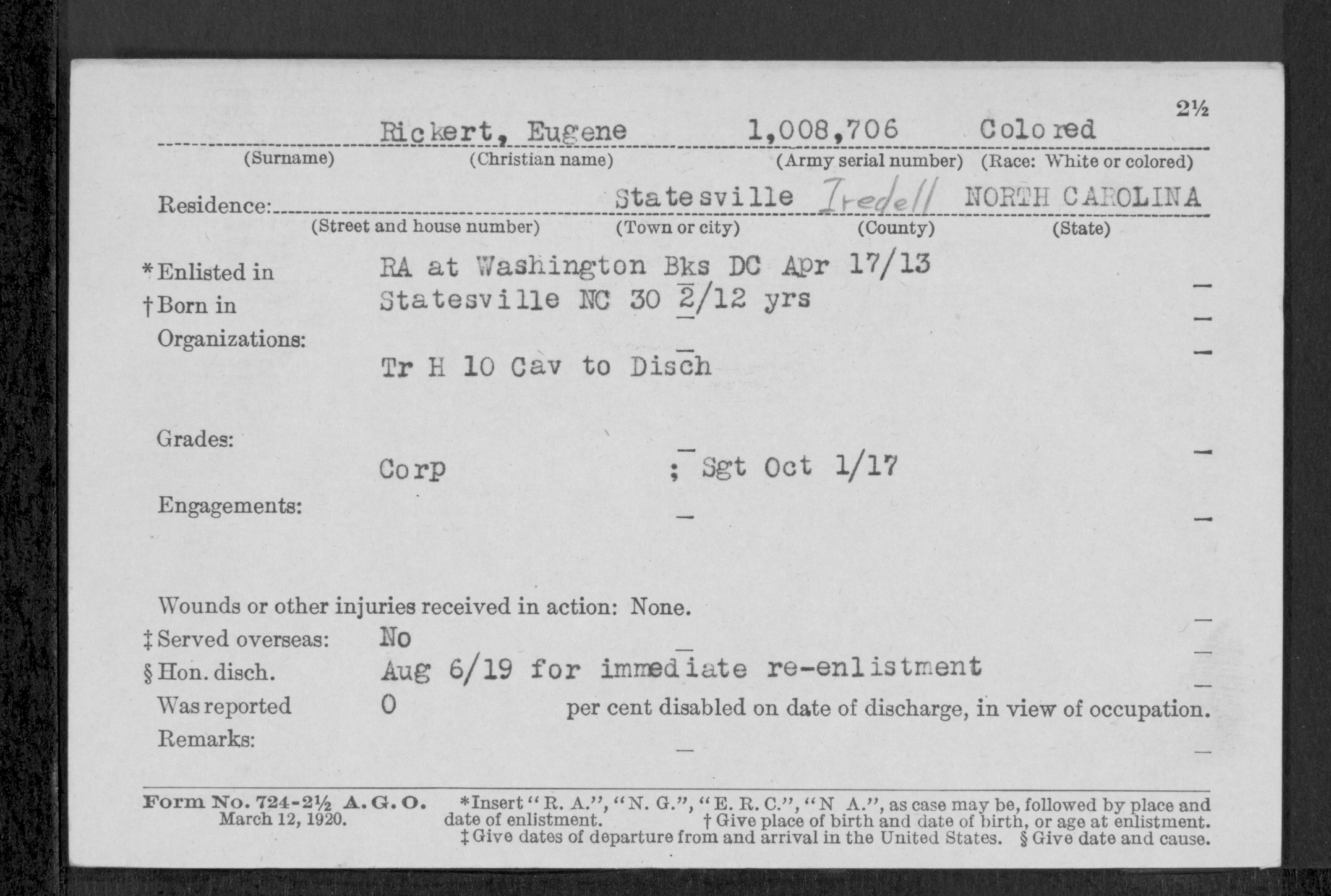 | Discharge date: | 8/6/1919 for immediate reenlistment |